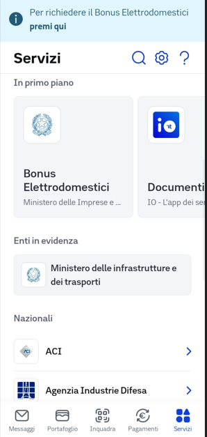 - Entrare nella sezione “Servizi” dell’app.