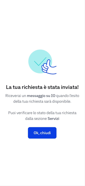 - Quando la domanda è ancora in fase di valutazione, sull’app IO apparirà lo stato tipo “verifica in corso”.